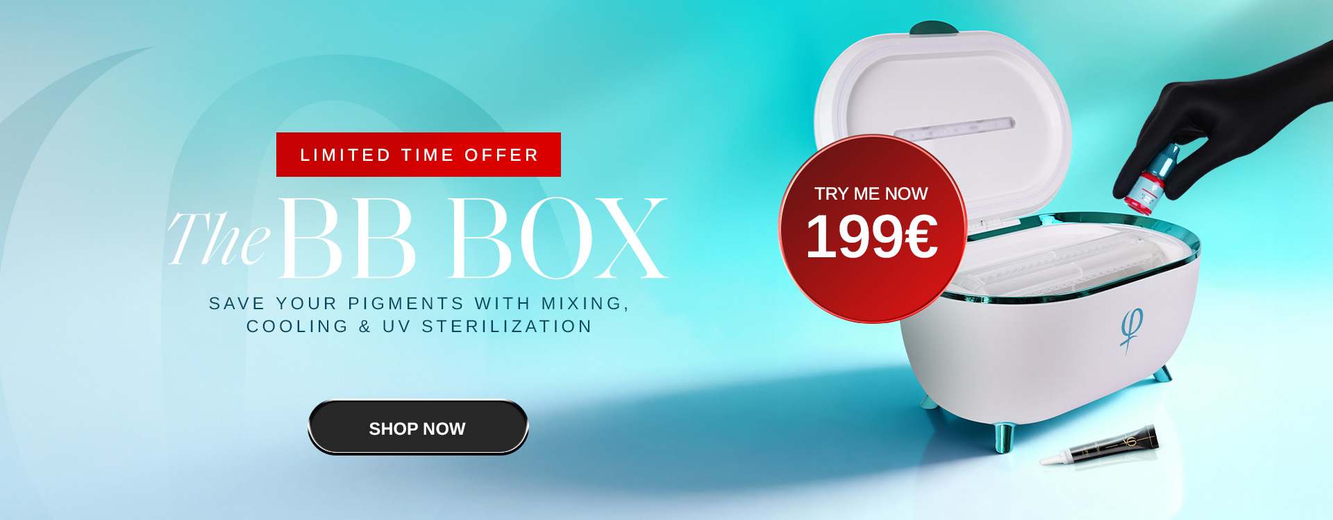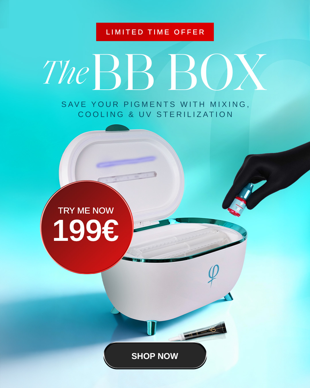 Function: Refrigeration/rotation/ultraviolet light Color: White with blue details Material: ABS Power: Comes with 1x AC power cable Size: 46 x 32 x 27cm Refrigeration Quality and longevity of the PMU pigments play a significant role in the final outcome of the treatment. Proper storage is crucial for maintaining the quality of PMU pigments. Exposure to extreme temperatures can degrade the pigments, so pigments should be stored in a cool and dry place. Most artists store their pigments at room temperature. This can vary from salon to salon, with a huge range in temperature. The BB Box has a cooling effect and can reduce the temperature of the pigments to 10-15°C below the room temperature. This guarantees the long-term quality and stability of the product. Rotation PMU pigments are known to easily form layers in the bottle due to the concentration of the pigments in the solution. They need to be shaken well before use in order to maintain the consistency of the pigment and to get optimum results after treatment. It is often very difficult to shake them well enough, and up to 50% of artists do not manage to thoroughly shake the pigment to get the optimal consistency before treatment. …that's why we have developed a rotator within the BB Box! All you need to do is place your pigments in the trays of the device and turn it on. The device then ensures constant rotation and prevents the deposition of pigments. Shaking has never been easier! Ultraviolet (UV) Light A sterile environment is key to avoiding infections that could compromise the results and safety of a PMU procedure. Proper sanitation and sterilization practices protect the client, but also you as an artist. Although all tools used during PMU treatments (as well as the pigment itself!) are sterile, the surface of the used pigment bottle can be a carrier of a large number of bacteria and germs. …that’s why we have installed UV light in the BB Box. While the bottles are rotating, UV light completely destroys bacteria and germs from their surface. We raise safety to a higher level! The machine is supplied with European plugs and operates on European voltage. An adapter may be required for use in other countries.Warranty: 2 years